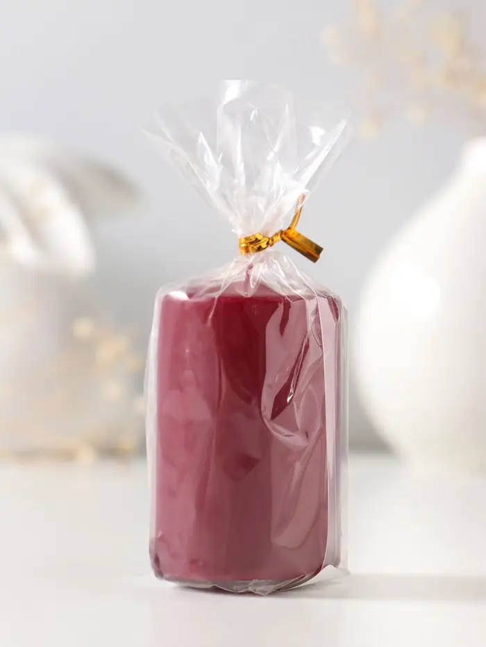 Бордовая свеча в форме цилиндра создаёт уютное и тёплое освещение на шесть часов. Её насыщенный глубокий цвет и классическая форма подходят для любого интерьера и особых моментов.