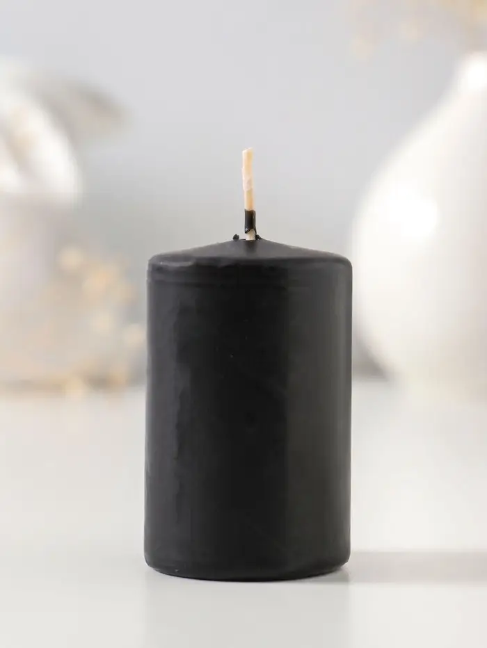 Чёрная цилиндрическая свеча станет ключевым элементом праздничного стола на Хэллоуин, добавит драматизма готическому декору или послужит элегантным источником мягкого света в спальне или ванной комнате. Её нейтральный дизайн легко вписывается в любую обстановку, не требуя специального подсвечника.