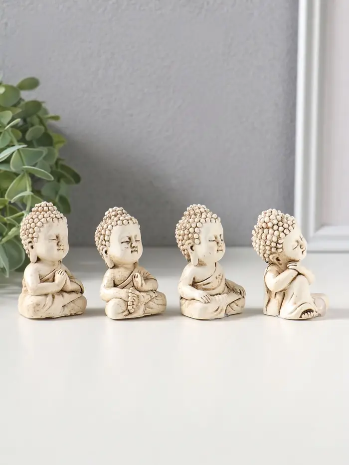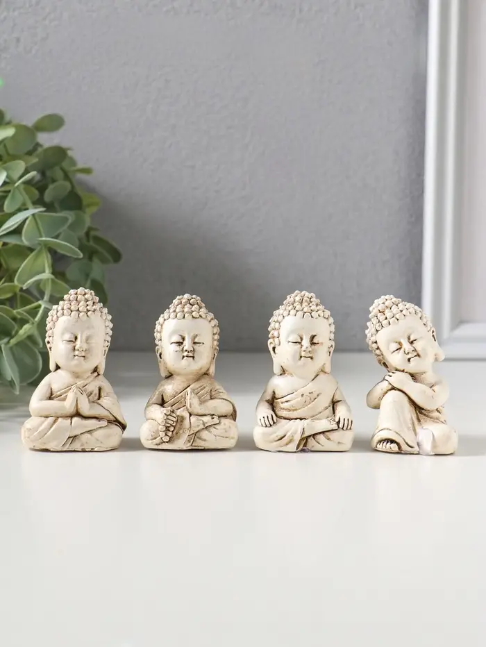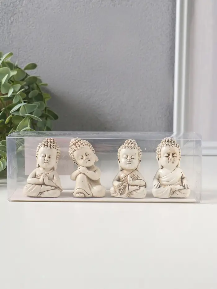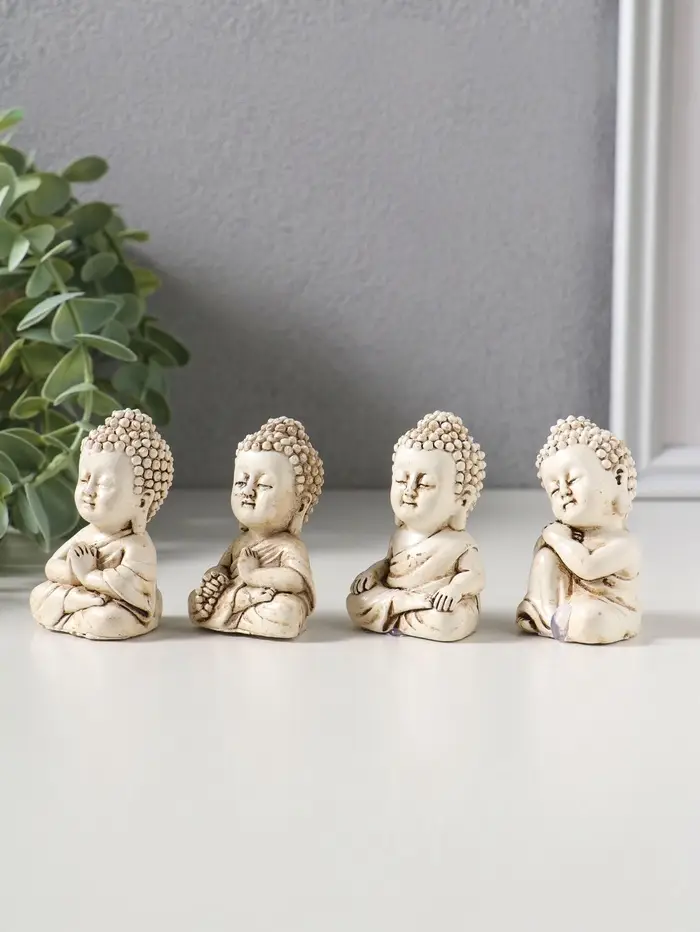 Сувенир полистоун "Медитация маленького Будды" набор 4 шт беж 3х3,5х6 см