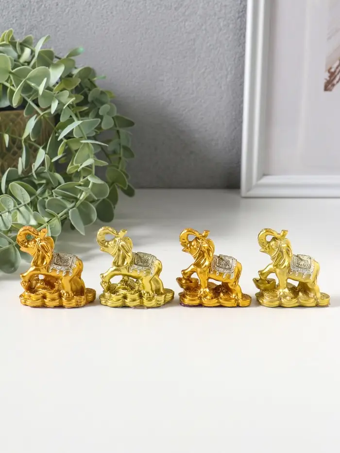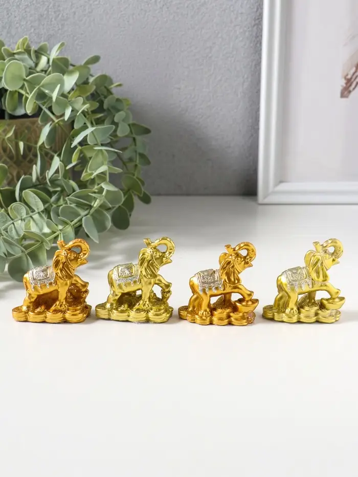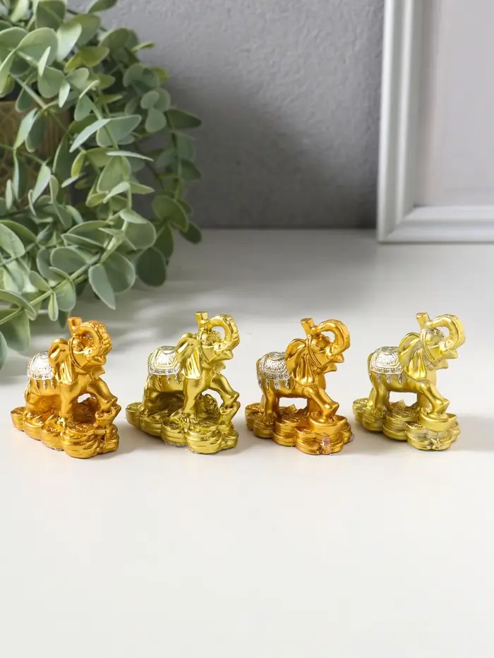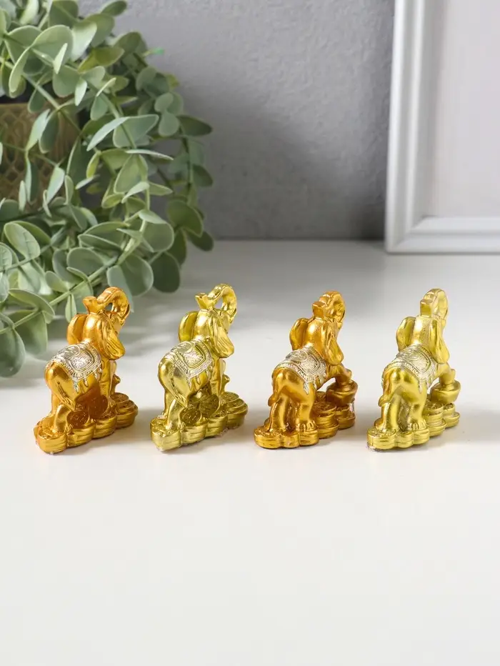 Сувенир полистоун "Слон на монетах и слитках" набор 4 шт золото 2,5х5х5 см