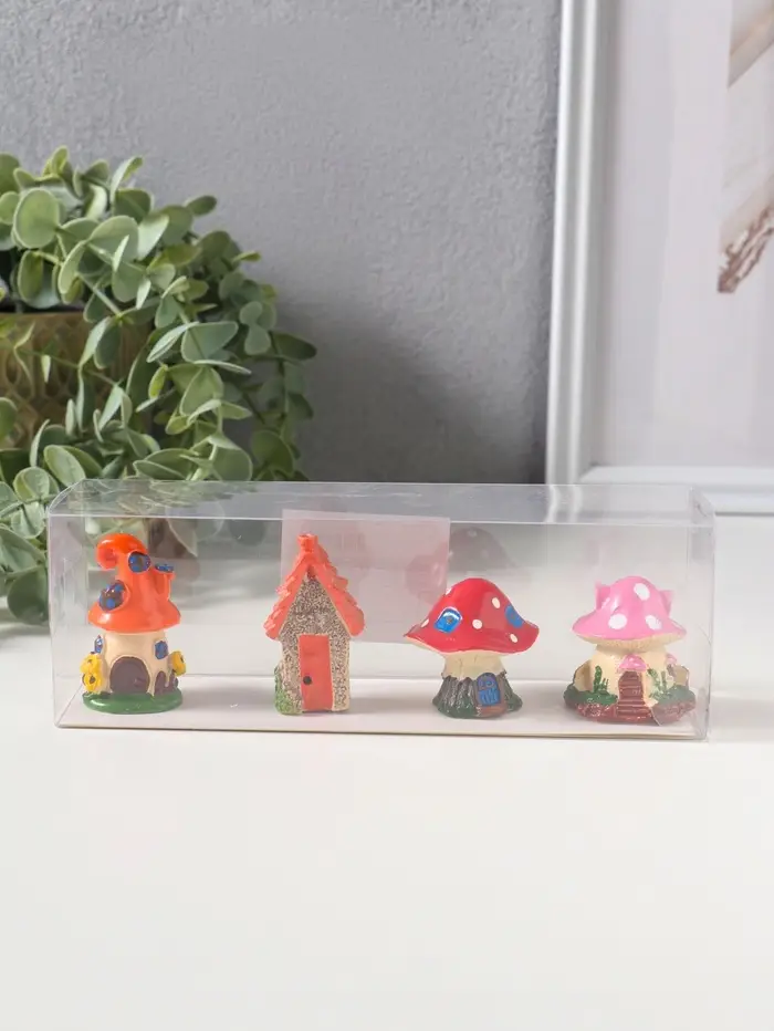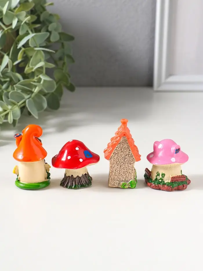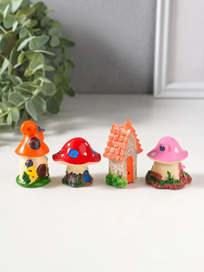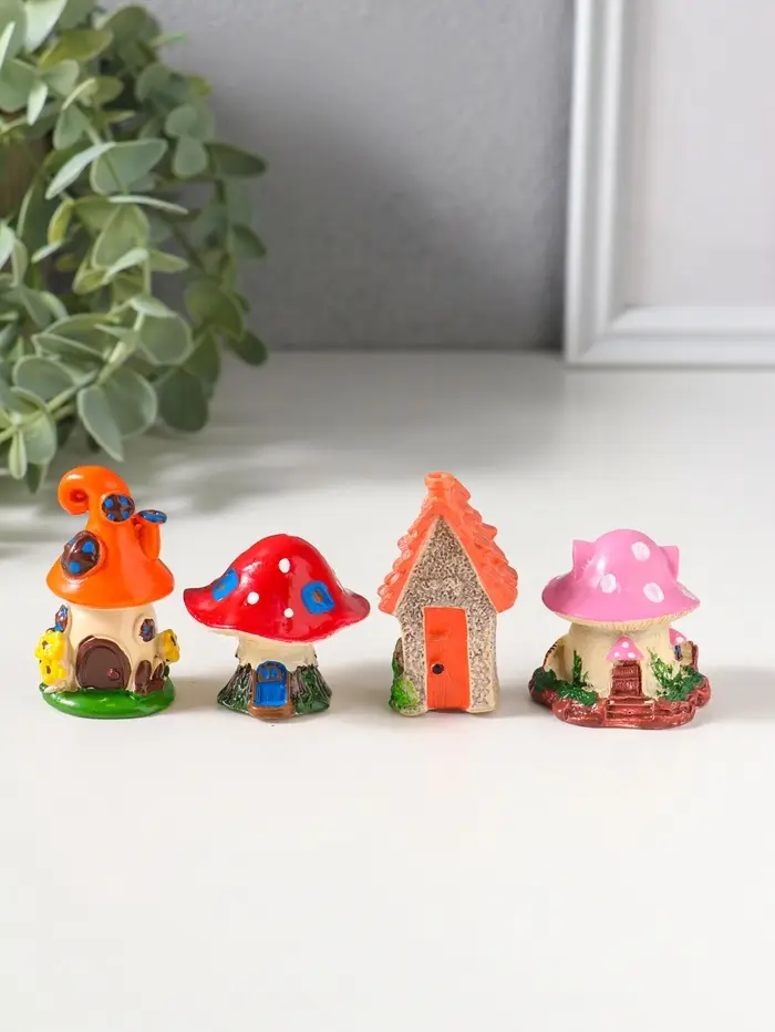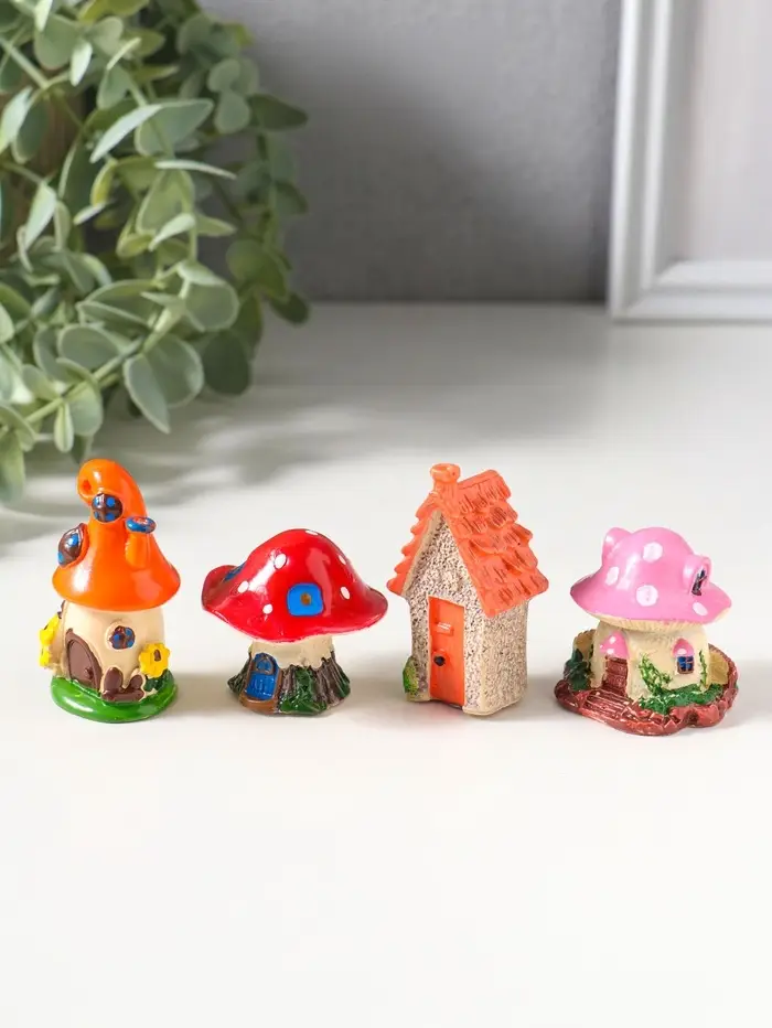 Сувенир полистоун "Домики-грибочки" набор 4 шт 3,5х3,5х5 см