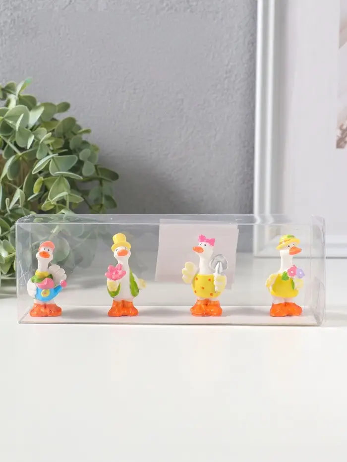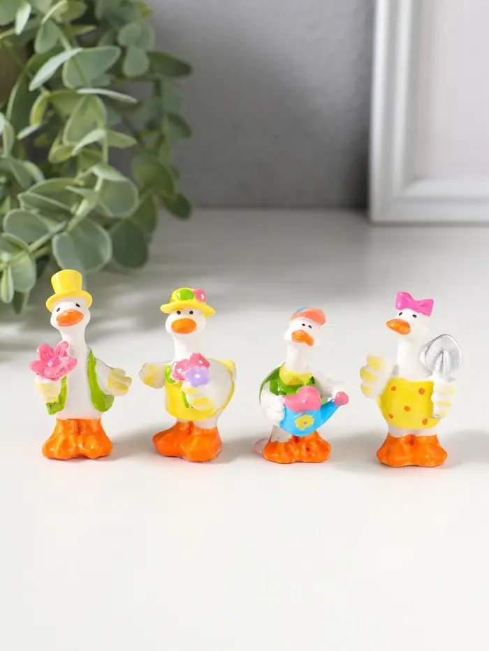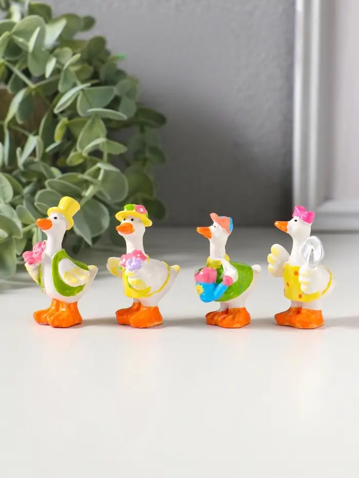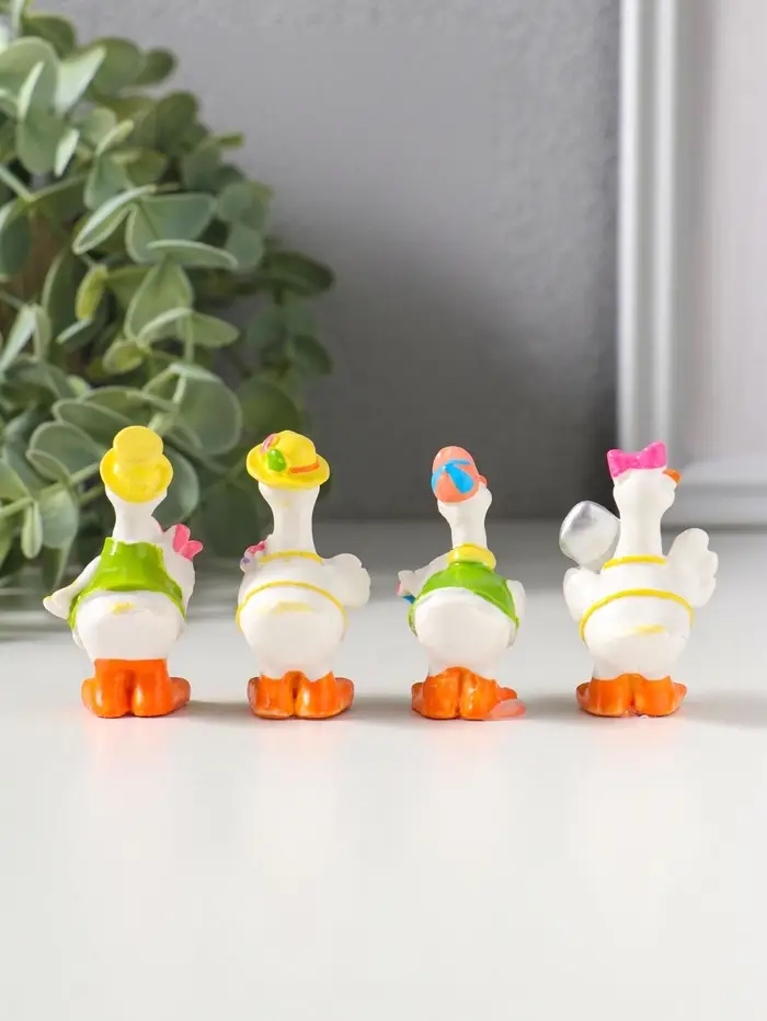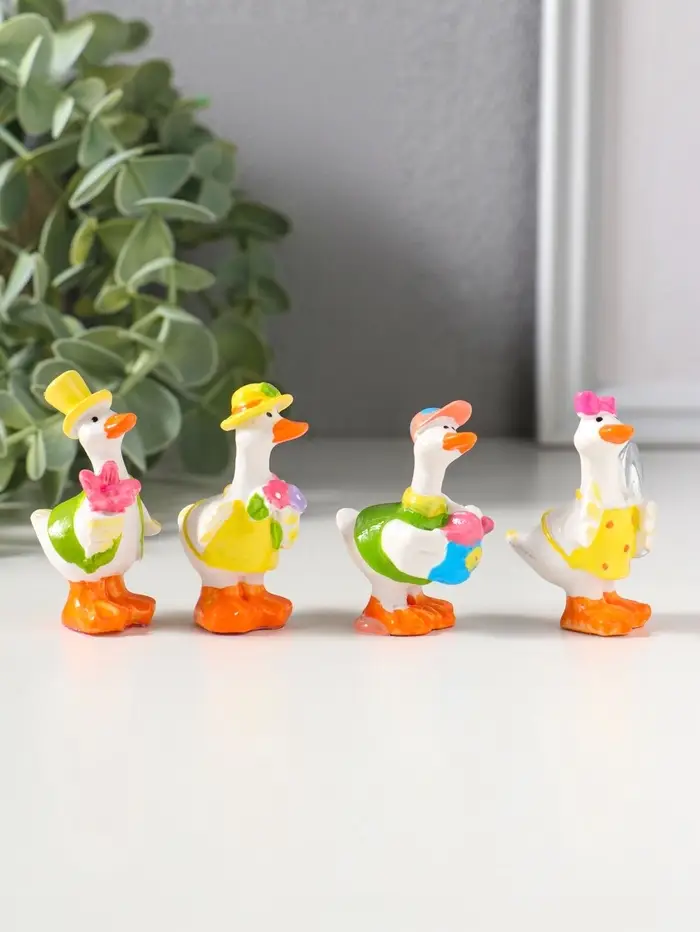 Сувенир полистоун "Гусятки в ярких нарядах" набор 4 шт 2,5х2,5х5,5 см