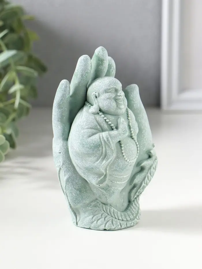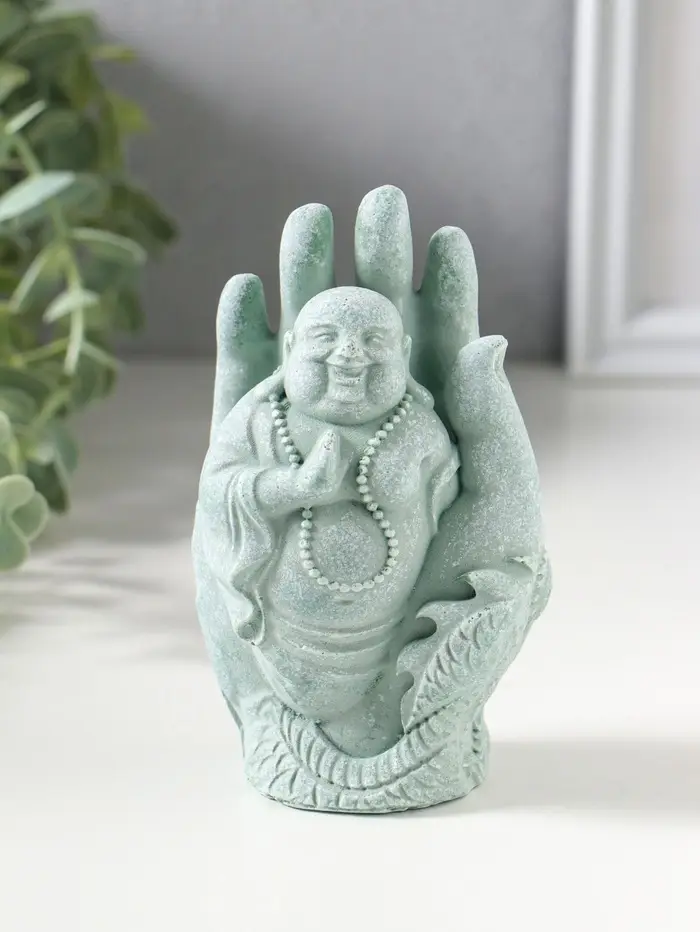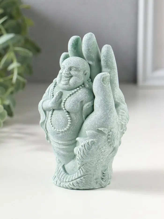 Сувенир полистоун "Хотей и рука с драконом" зелёный 6,5х7х12,5 см