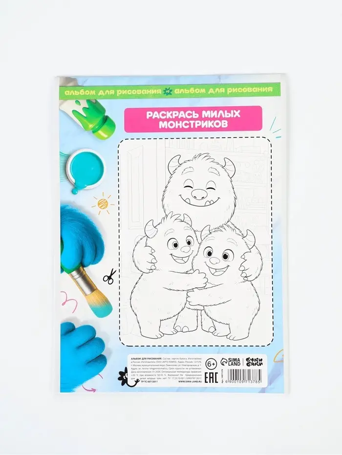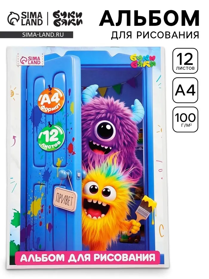 Альбом для рисования, 12 листов, на скрепке, А4 «Монстрики»