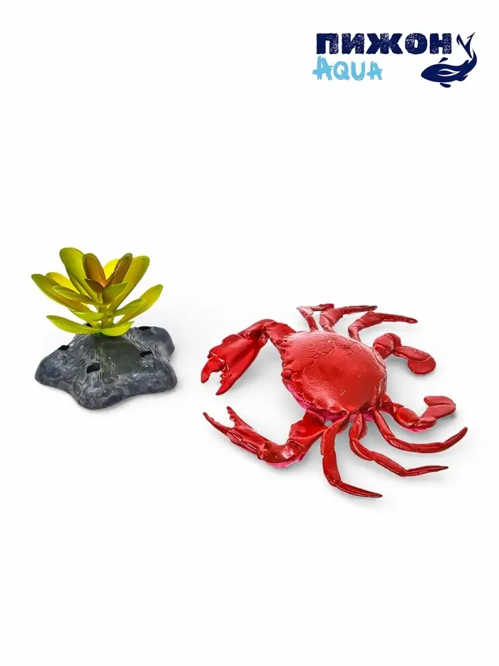 Набор декора для аквариума "Краб и трава"