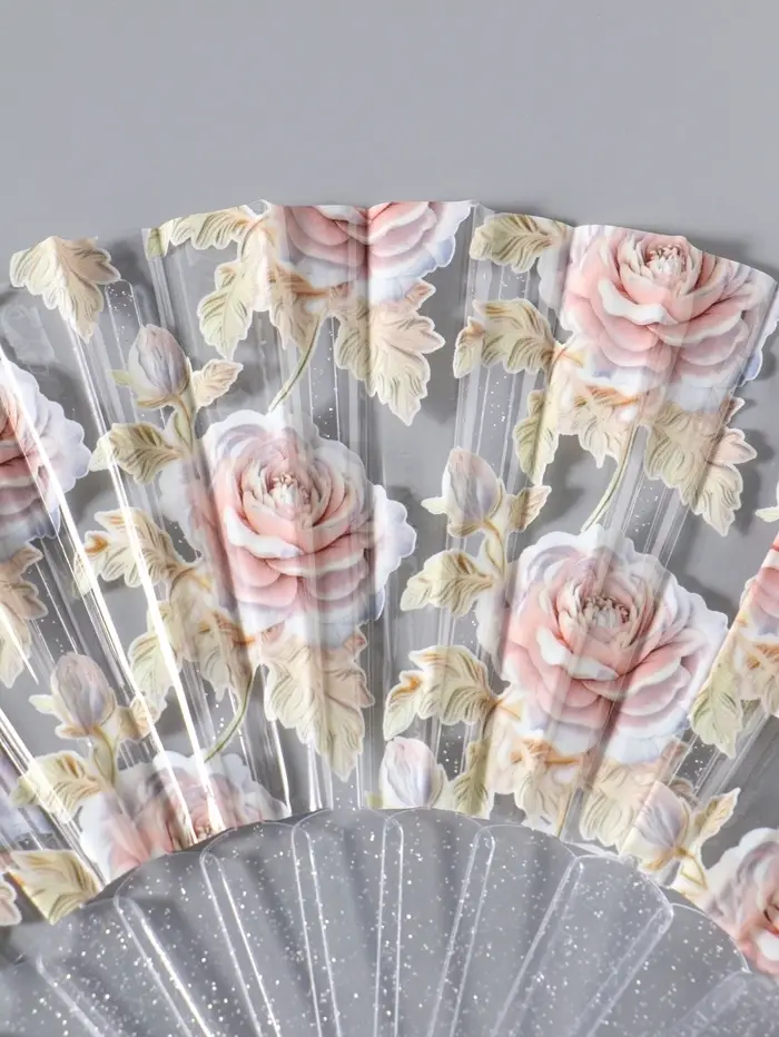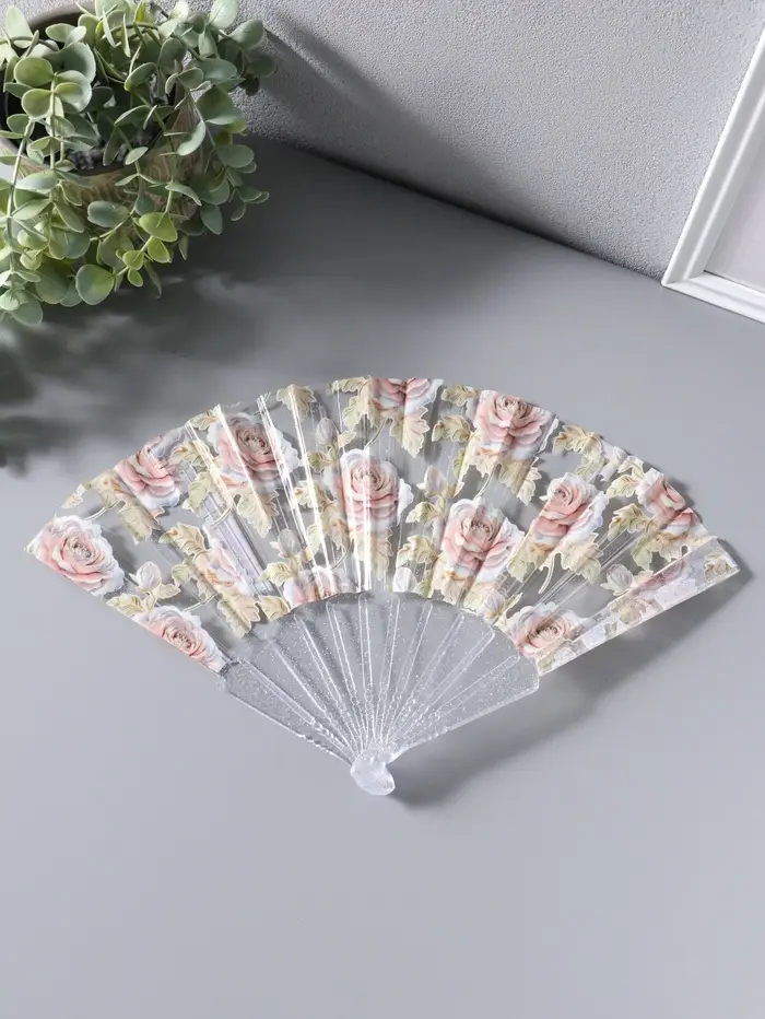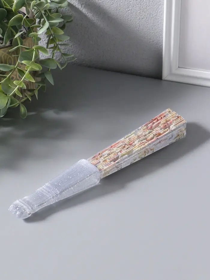 Этот складной веер из пластика — элегантный аксессуар для жарких дней. Его нежный бежевый оттенок с прозрачными вставками и цветочным узором создаёт образ лёгкости и романтики. Компактный размер делает веер идеальным спутником для прогулок, посещения мероприятий или создания комфорта в душном помещении.