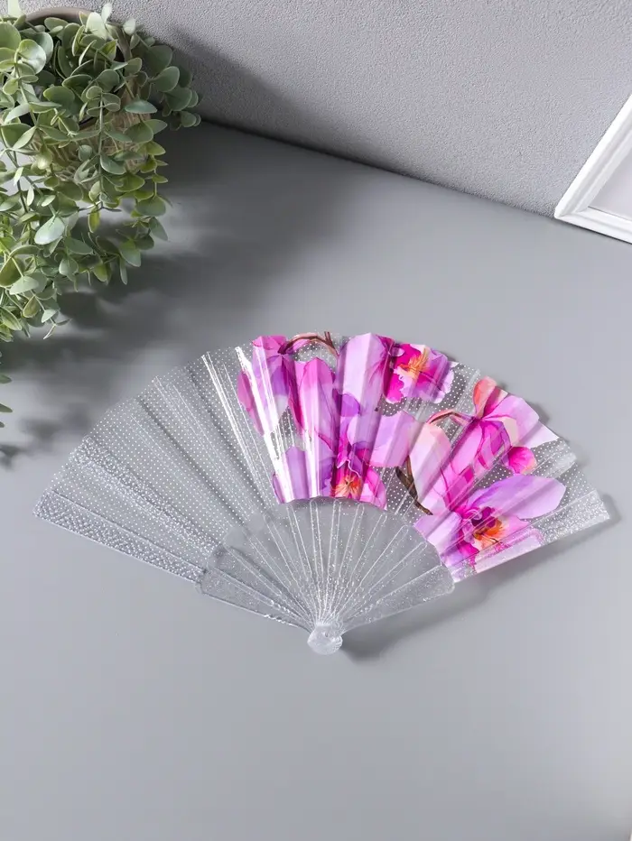 Веер складной пластик «Орхидея розовая», блеск, 23 см