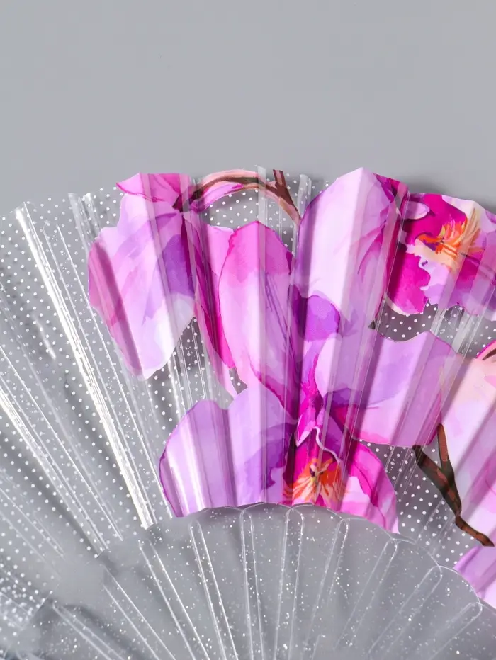 Веер создаёт приятный поток воздуха, помогая сохранить комфорт в духоту. Его дизайн с розовыми орхидеями поднимает настроение и дополняет летний образ. Это практичное решение для тех, кто ценит эстетику в повседневных вещах. Просто откройте его одним движением — и почувствуйте свежесть.