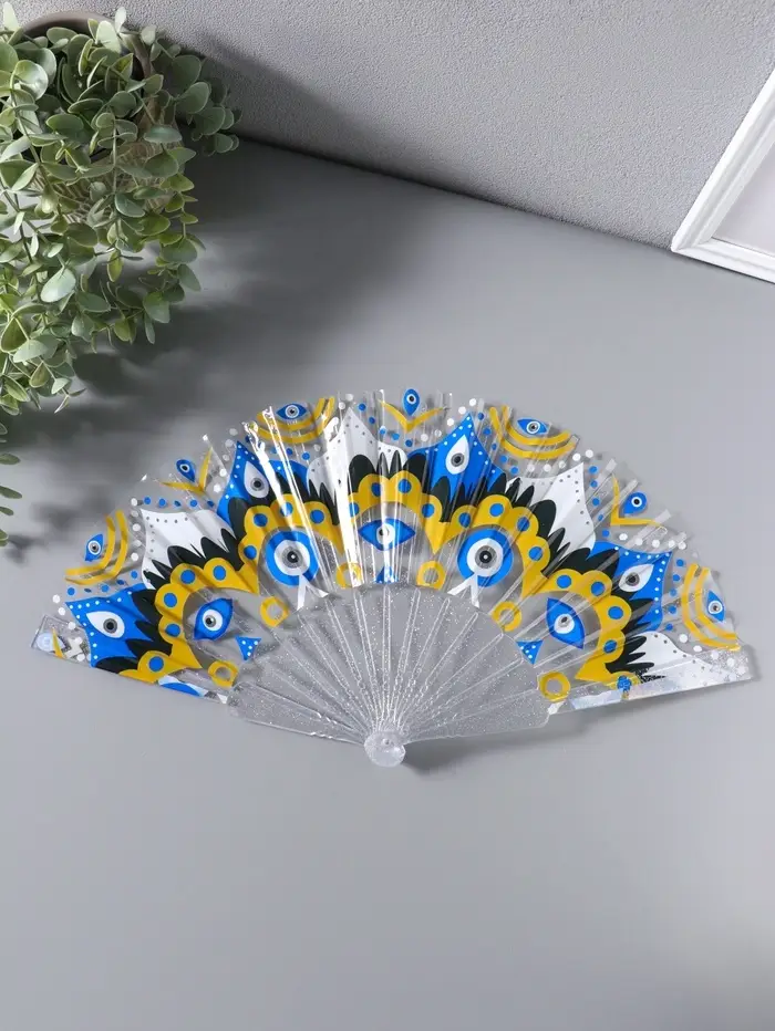 Веер складной пластик «Узор от сглаза», блеск, 23 см