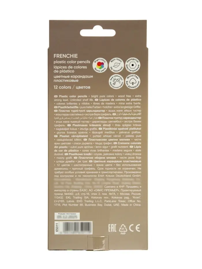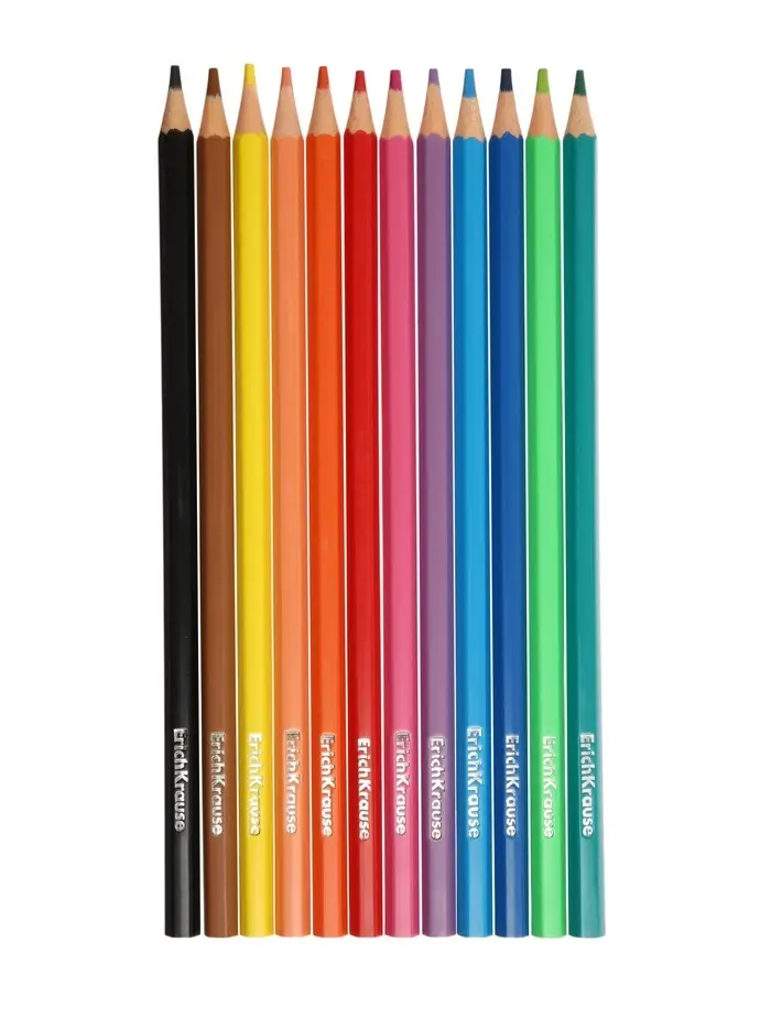Пластиковые цветные карандаши представлены в яркой палитре из 12 цветов. Благодаря шестигранной форме, карандаши удобно лежат в руке и не скатываются с поверхности. Специальная технология изготовления карандаша методом экструзии надежно фиксирует грифель к корпусу, что обеспечивает высокую ударопрочность. Идеальная центровка грифеля и пластичность материала карандаша гарантирует легкую заточку с экономным расходом карандаша. Грифель диаметром 2.6 мм не ломается и не крошится даже при сильном нажиме.
