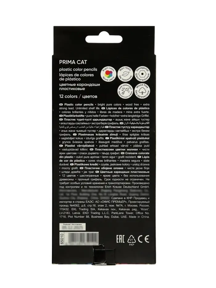 Пластиковые цветные карандаши представлены в яркой палитре из 12 цветов. Благодаря шестигранной форме, карандаши удобно лежат в руке и не скатываются с поверхности. Специальная технология изготовления карандаша методом экструзии надежно фиксирует грифель к корпусу, что обеспечивает высокую ударопрочность. Идеальная центровка грифеля и пластичность материала карандаша гарантирует легкую заточку с экономным расходом карандаша. Грифель диаметром 2.6 мм не ломается и не крошится даже при сильном нажиме.