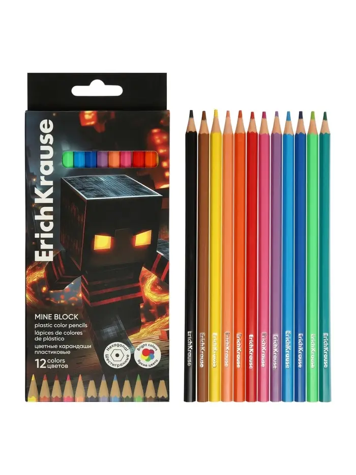 Карандаши 12 цветов, ErichKrause Mine Block, пластиковые, шестигранные