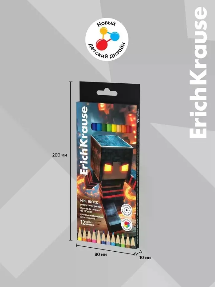 Пластиковые цветные карандаши представлены в яркой палитре из 12 цветов. Благодаря шестигранной форме, карандаши удобно лежат в руке и не скатываются с поверхности. Специальная технология изготовления карандаша методом экструзии надежно фиксирует грифель к корпусу, что обеспечивает высокую ударопрочность. Идеальная центровка грифеля и пластичность материала карандаша гарантирует легкую заточку с экономным расходом карандаша. Грифель диаметром 2.6 мм не ломается и не крошится даже при сильном нажиме.