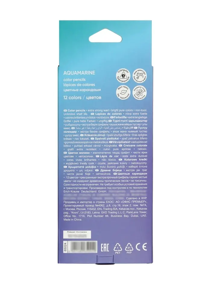 Деревянные цветные карандаши ErichKrause представлены в палитре 12 ярких цветов. Трехгранная форма корпуса удобно лежит в руке. Мягкий грифель 3 мм не царапает бумагу и не ломается при сильном нажатии. В комплекте с карандашами идет точилка.