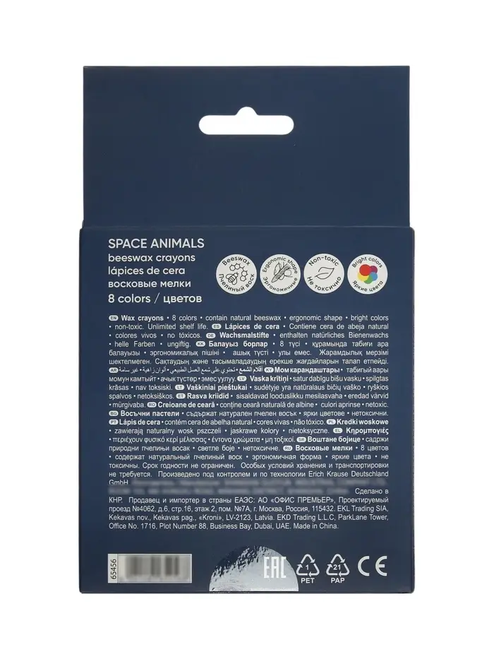 Восковые мелки 8 цветов, ErichKrause Kids Space Animals
