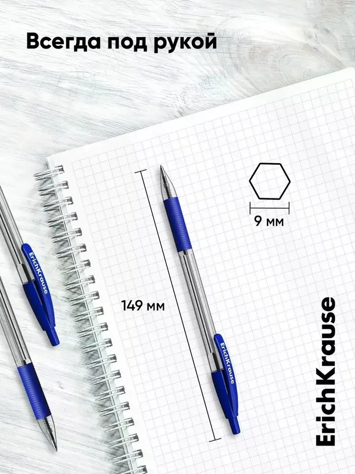 Классическая автоматическая шариковая ручка Matic&Grip со стандартным типом пишущего узла и заменяемым стержнем. Ручка имеет прозрачный шестигранный корпус с удобной профилированной грип-зоной из резины. Цвет клипа и грип-зоны соответствует цвету чернил. 5-канальный пишущий узел с диаметром шарика 1.0 мм в сочетании с быстросохнущими чернилами обеспечивает мягкое и комфортное письмо. Длина непрерывной линии составляет 2000 м при толщине 0.5 мм.
