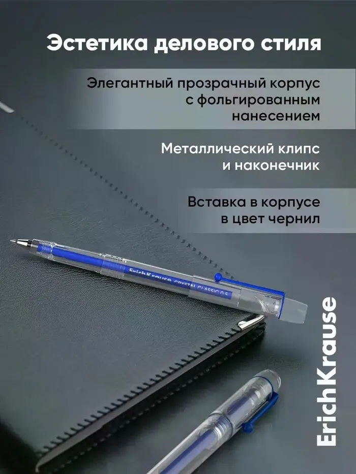 Ручка гелевая ErichKrause Crystal Stick, узел 0.5, чернила синие