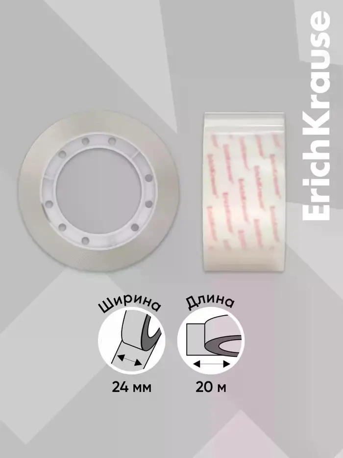 Набор из клейких лент ErichKrause Clear, 24 мм × 20 м, прозрачная