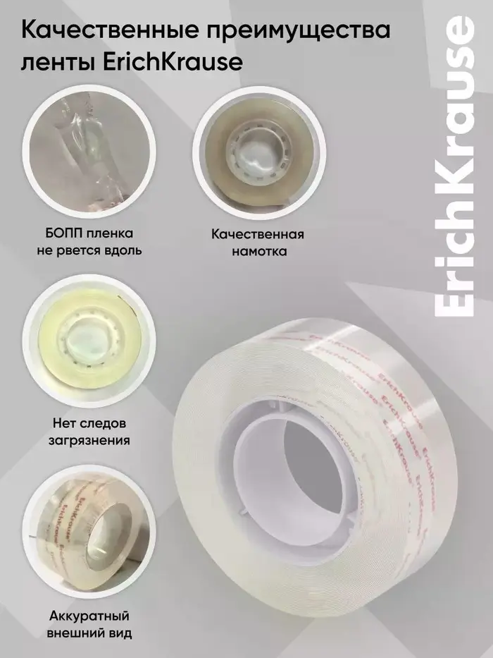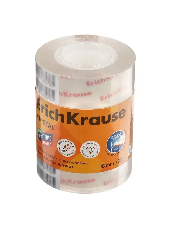 Клейкая лента ErichKrause Crystal, 18 мм × 33 м, повышенная прозрачность