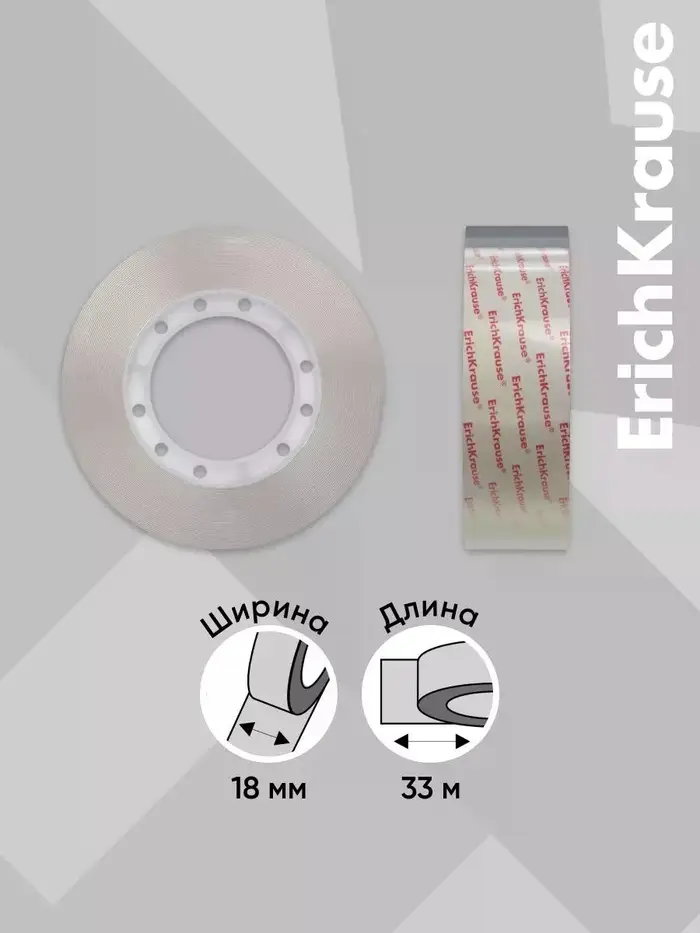 Клейкая лента ErichKrause Double-sided tape, 12 мм × 10 м, двусторонняя