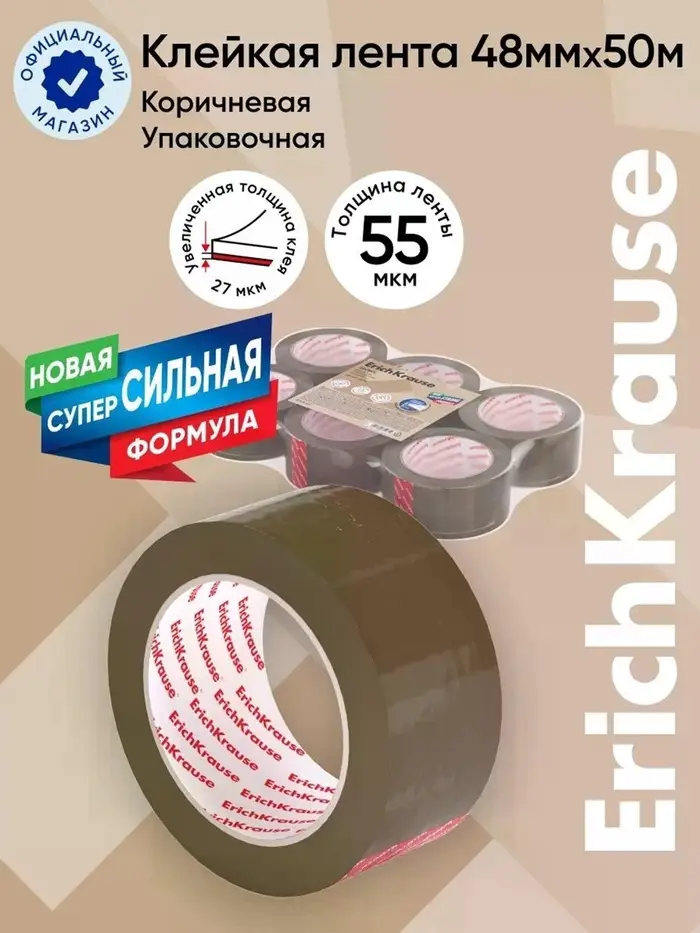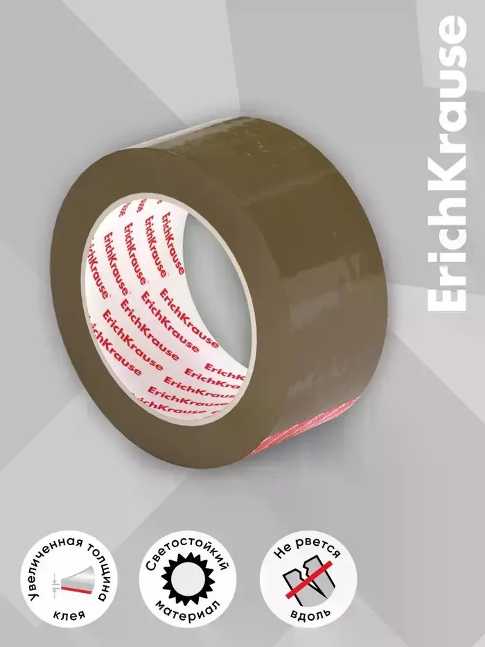 Клейкая лента упаковочная, коричневая. Увеличенная толщина клеевого слоя обеспечивает высокую клеящую способность ленты. Изготовлена из высококачественной биаксиально-ориентированной полипропиленовой пленки повышенной прочности, устойчива к продольному разрыву.