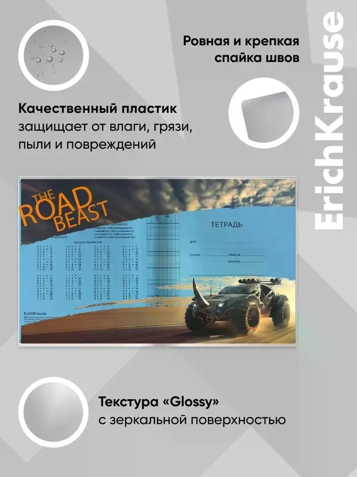 Набор пластиковых обложек для тетрадей ErichKrause Road Beast, 212×347 мм, 80 мкм, МИКС