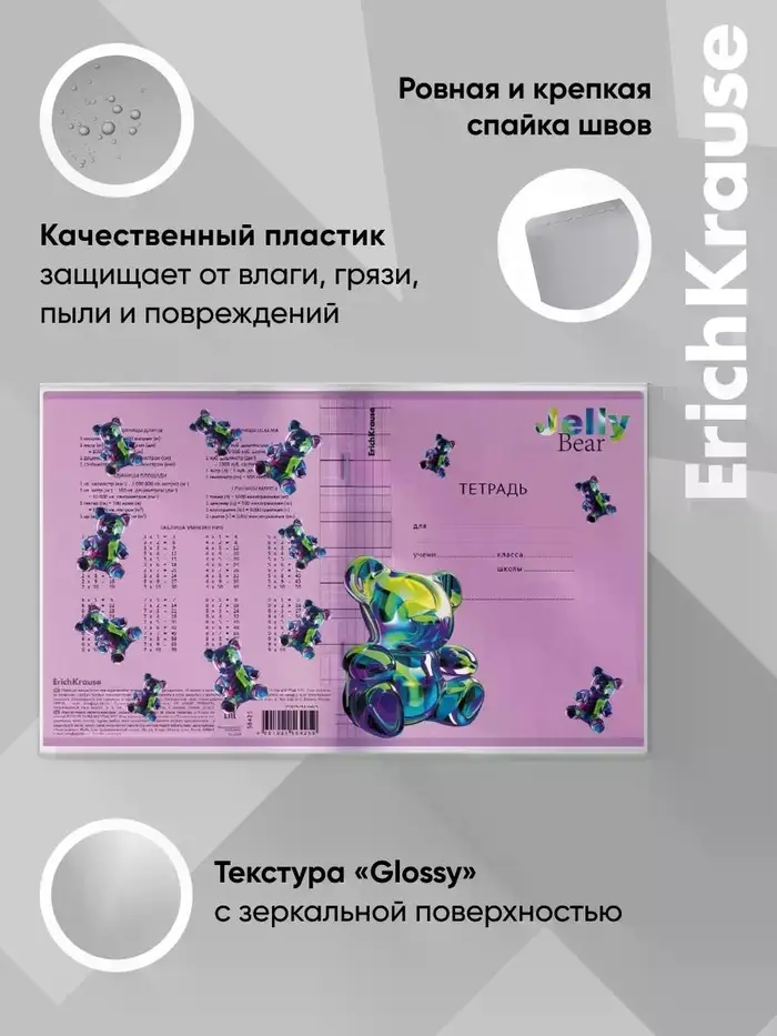 Набор пластиковых обложек для тетрадей ErichKrause Jelly Bear, 212×347 мм, 80 мкм, МИКС