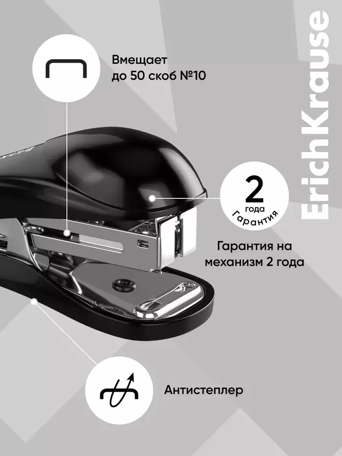 Степлер канцелярский № 10, ErichKrause Elegance, до 20 листов, встроенный антистеплер, черный