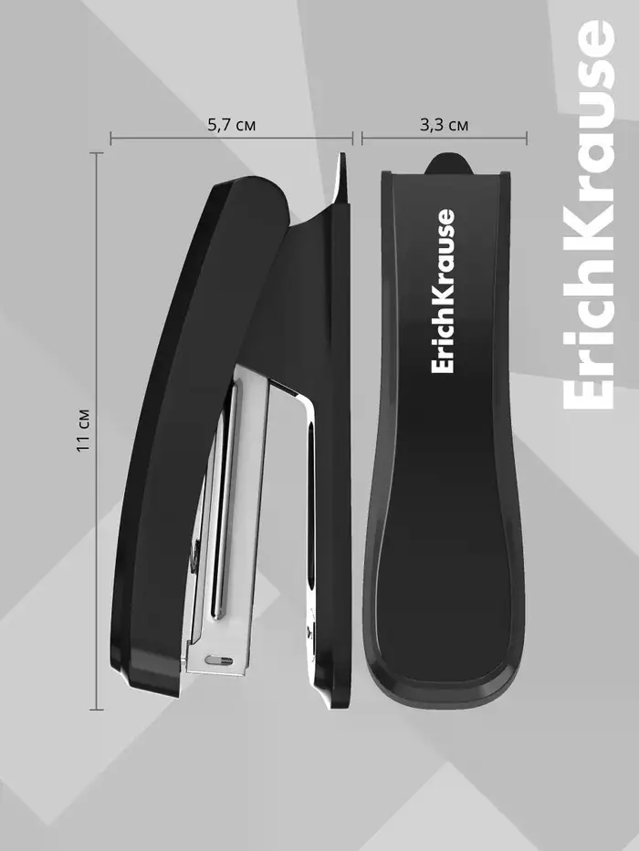 Степлер канцелярский № 10, ErichKrause Elegance, до 20 листов, встроенный антистеплер, черный