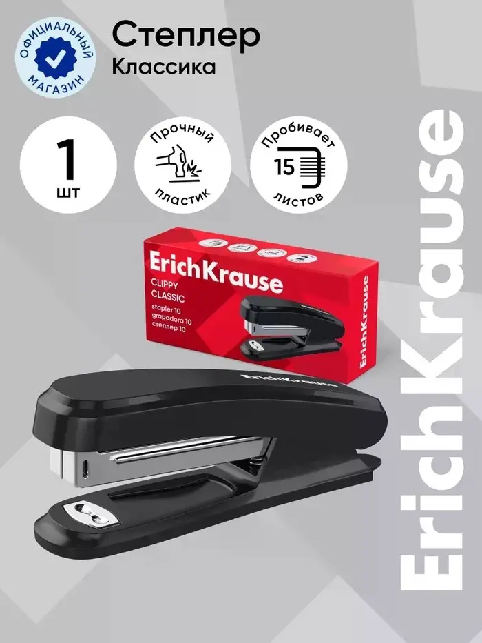 Степлер №10 15 л ErichKrause Clippy Classic, чёрный
