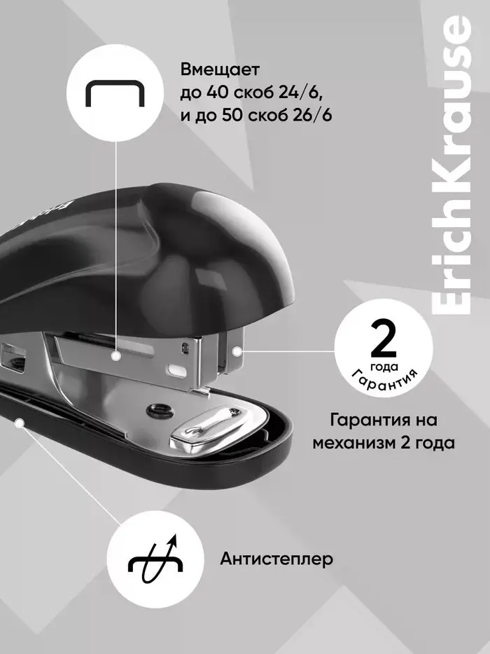 Степлер mini №24/6 20 л ErichKrause Compact Classic, чёрный