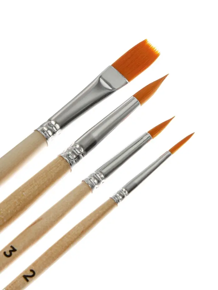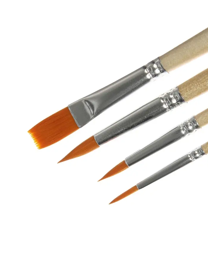 Набор кистей для рисования, пони, 4 штуки: № 1, 2, 3, 4, круглые, деревянная ручка, международный размер