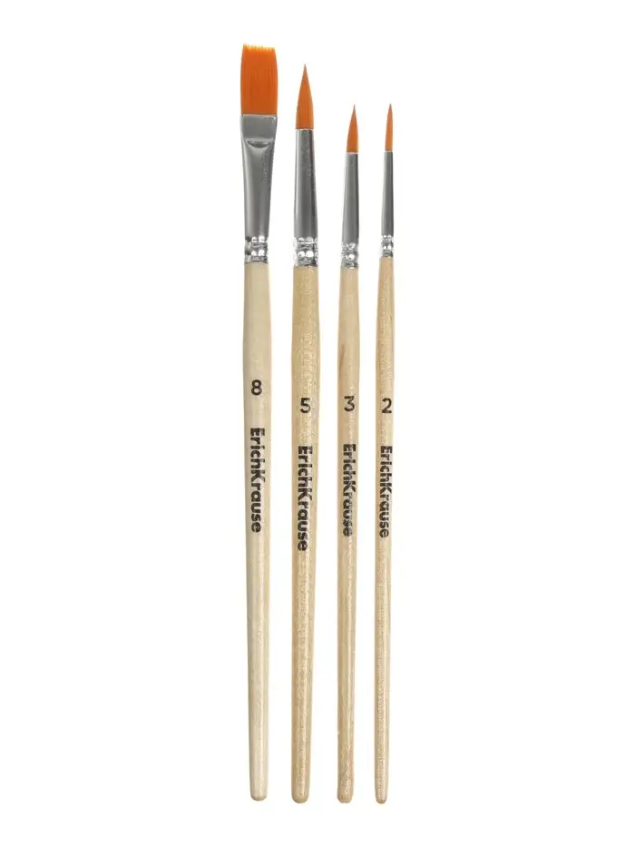 Набор кистей для рисования, синтетика, 4 штуки: № 2, 2, 4, 8, круглые, деревянная ручка, международный размер