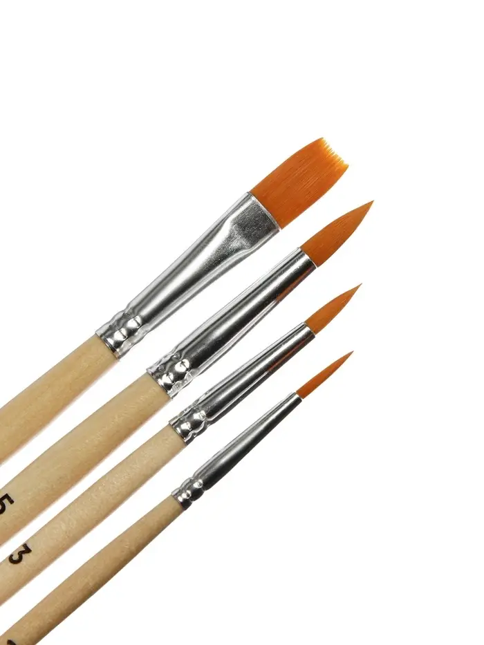 Набор кистей для рисования, пони, 4 штуки: № 1, 2, 3, 4, круглые, деревянная ручка, международный размер