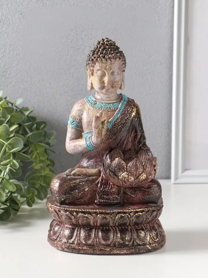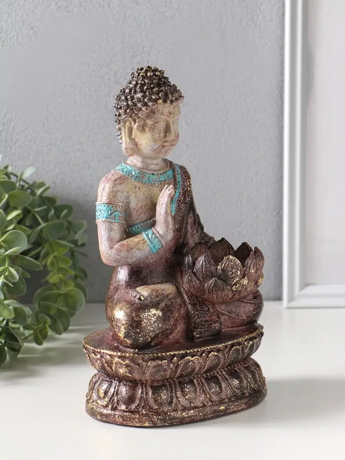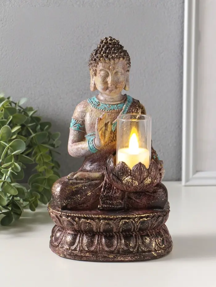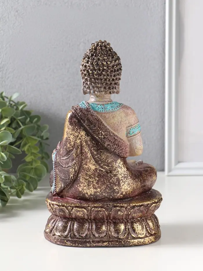Сувенир полистоун подсвечник "Будда с лотосом" с золотой патиной 10х14,5х25 см