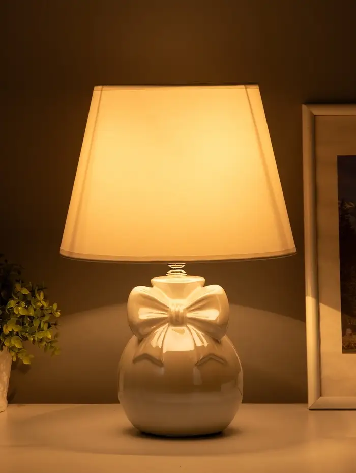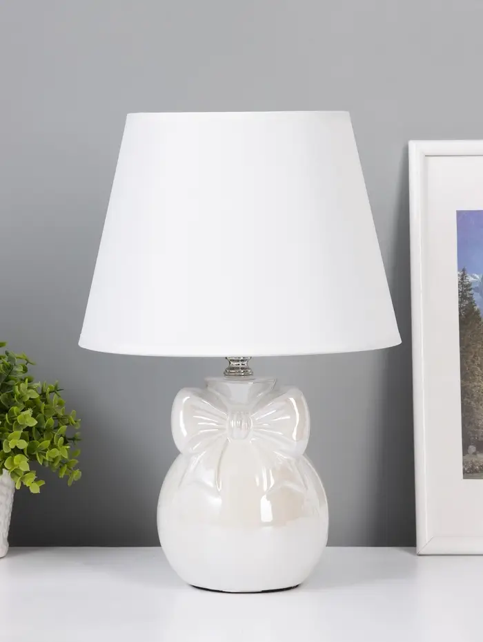 Лампа настольная E27 40Вт "Шар с бантом" беж перламутр 22х22х33,5 см
