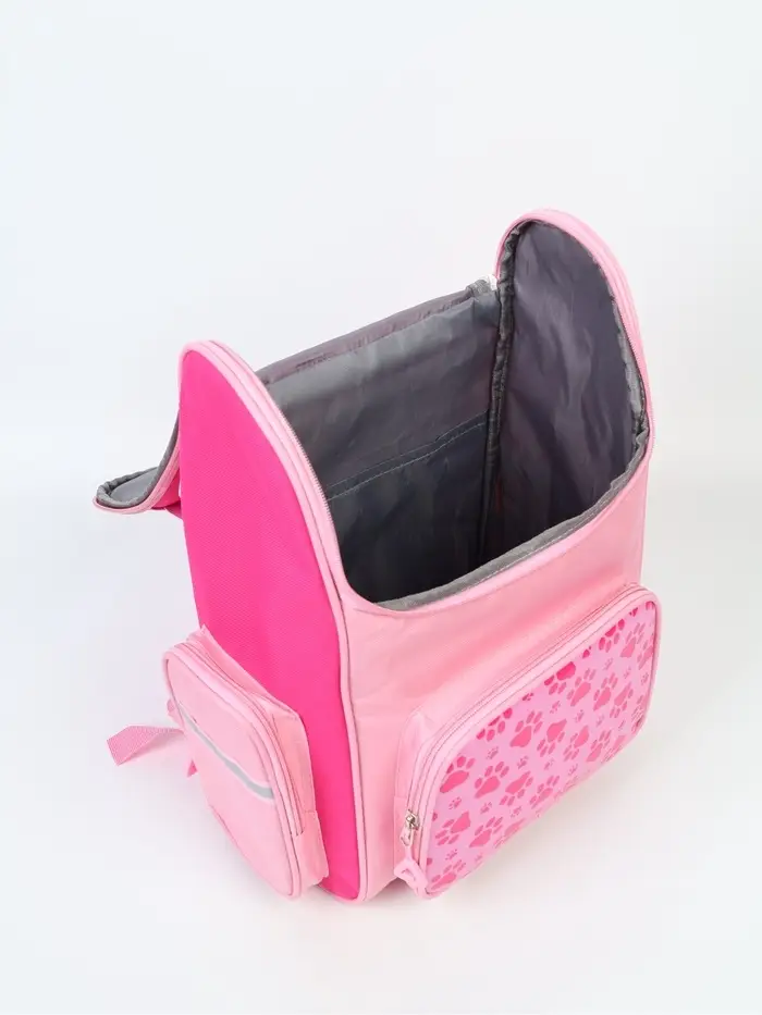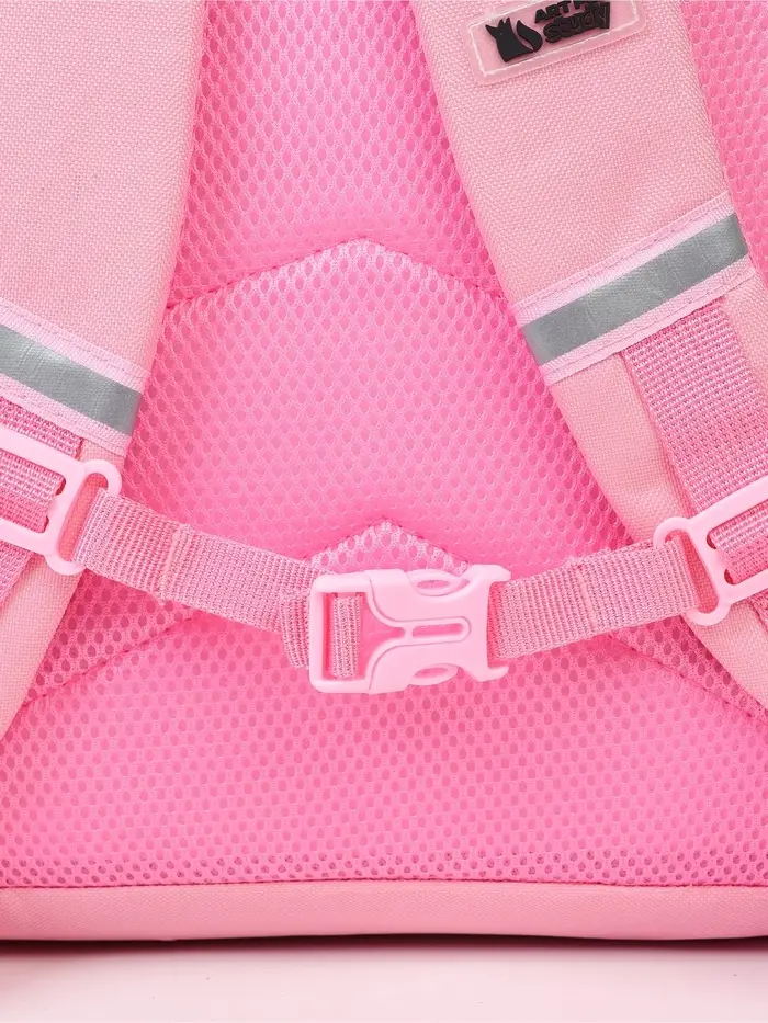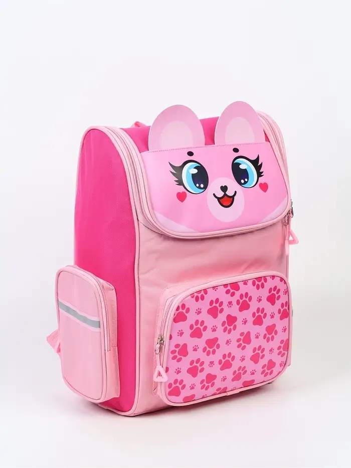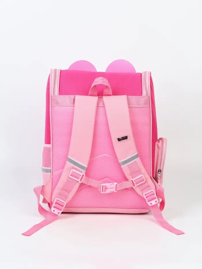 Ранец с эргономичной спинкой квадратный с доп. элементами "Мишка"