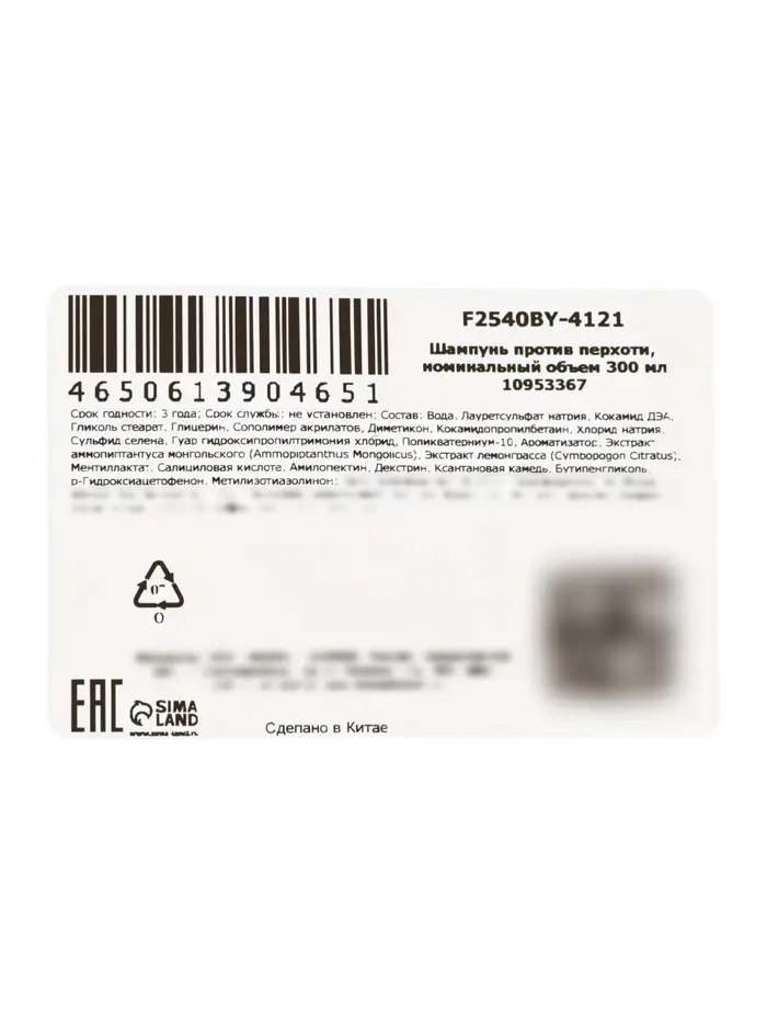 Шампунь против перхоти с салициловой кислотой, 300 мл