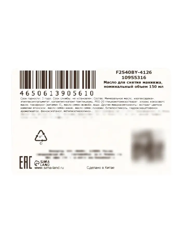 Масло гидрофильное для снятия макияжа с экстрактом камелии, 150 мл