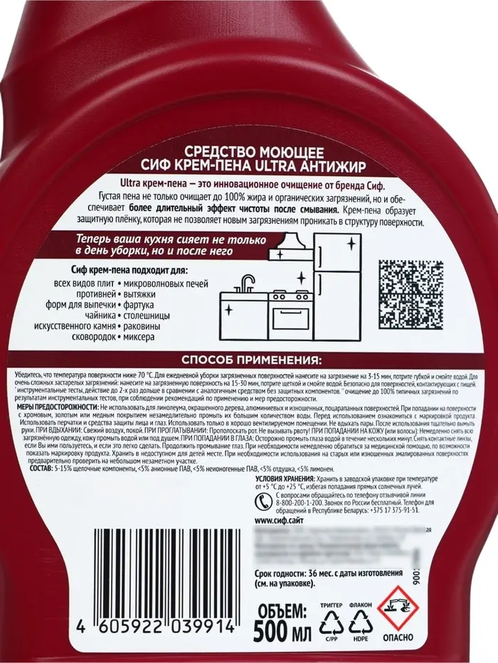 Чистящее средство крем-пена для кухни СИФ антижир, 500 мл