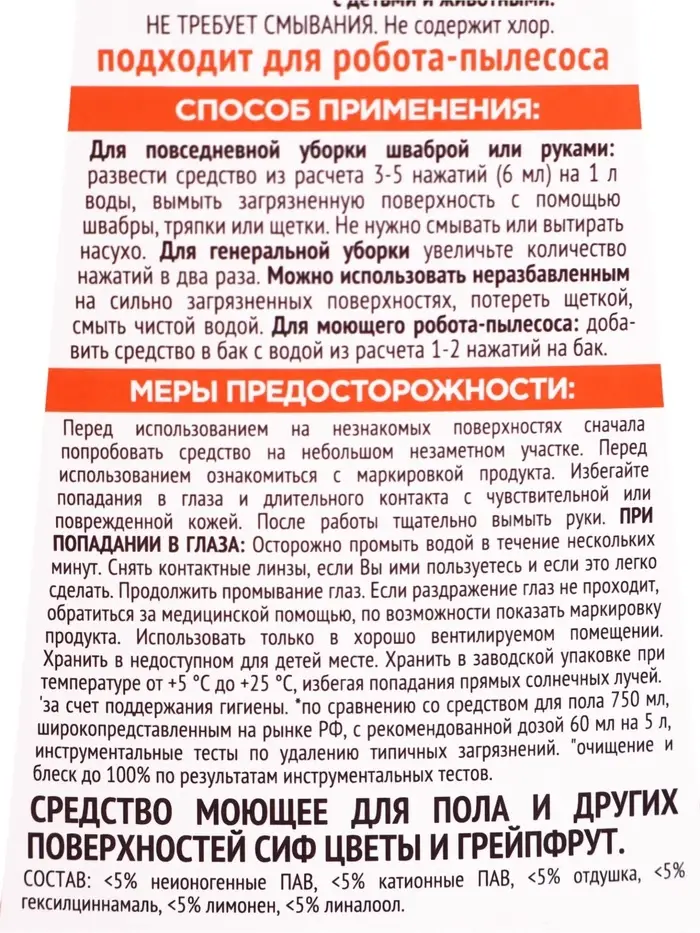 Средство для мытья пола гель-концентрат СИФ цветы и грейпфрут, 750 мл
