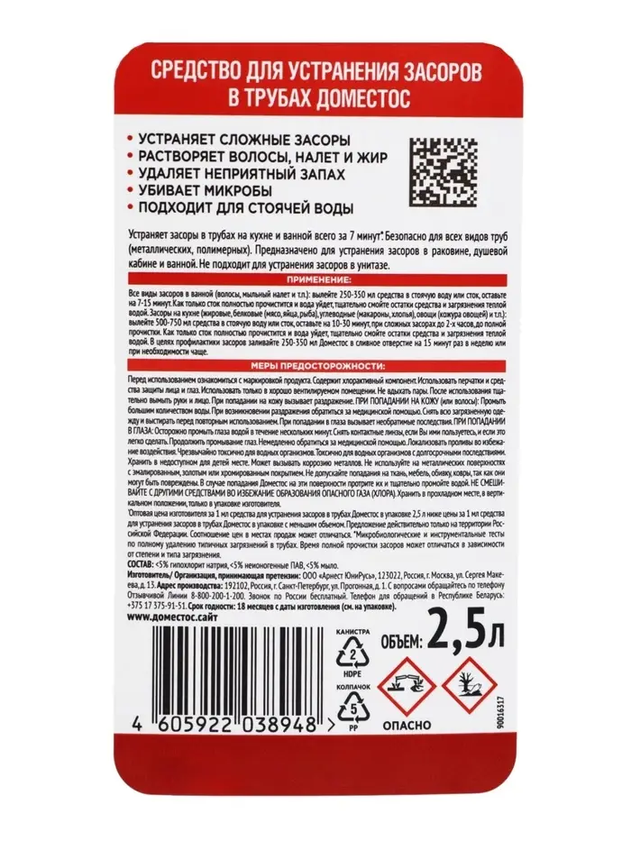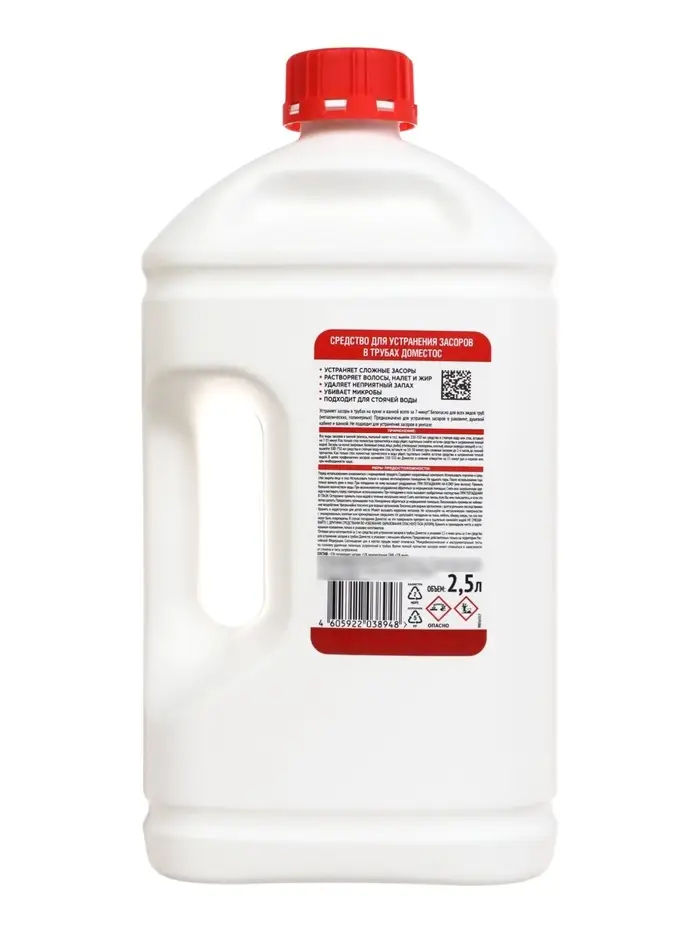 Средство для удаления засоров в трубах ДОМЕСТОС, 2,5 л