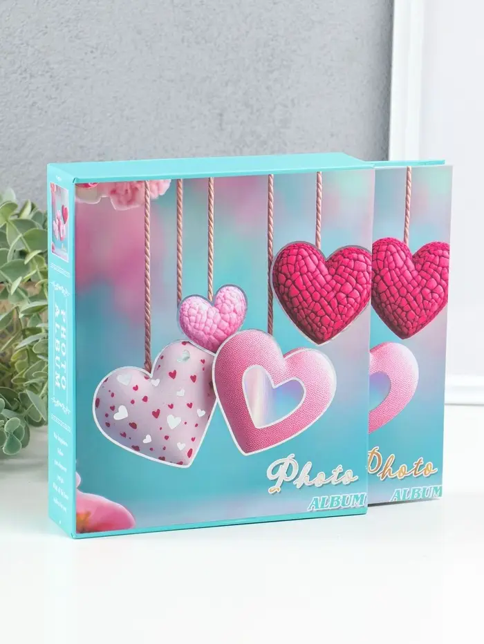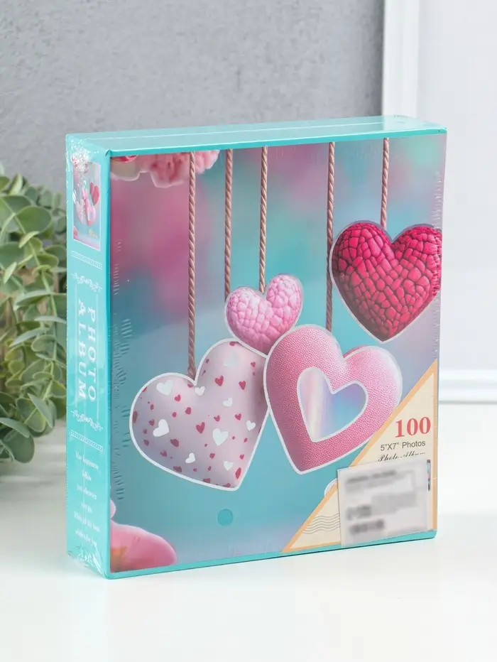 Фотоальбом на 100 фото 13х18 см "Сердца на веревочках" в коробке 5х18х20,5 см