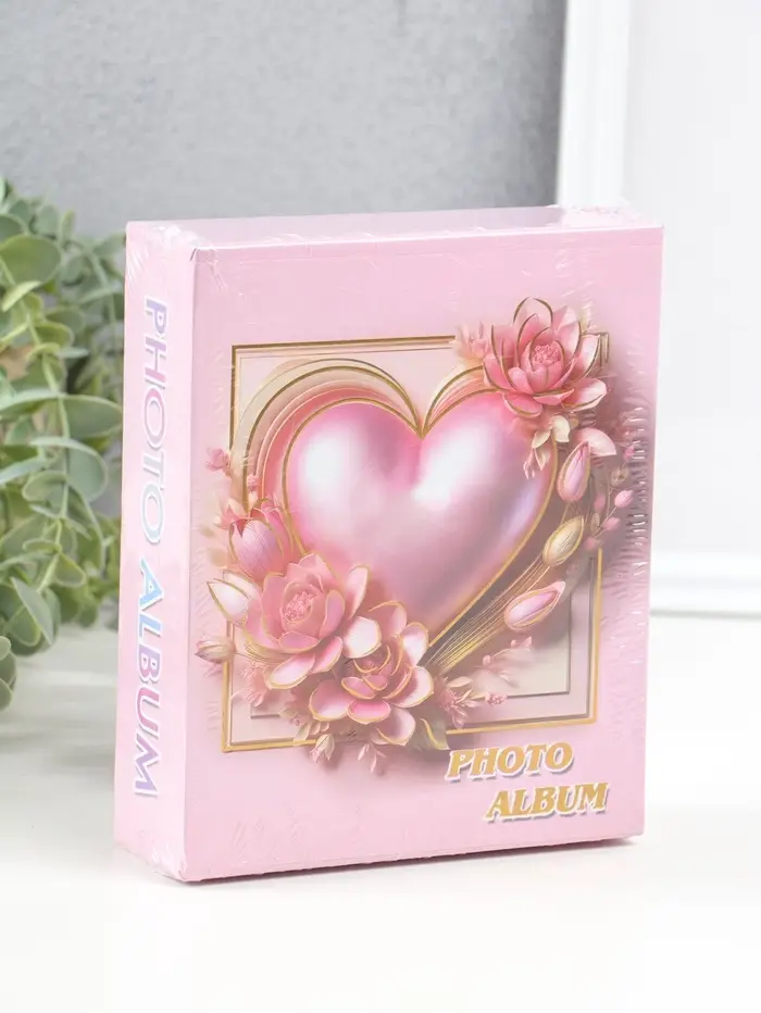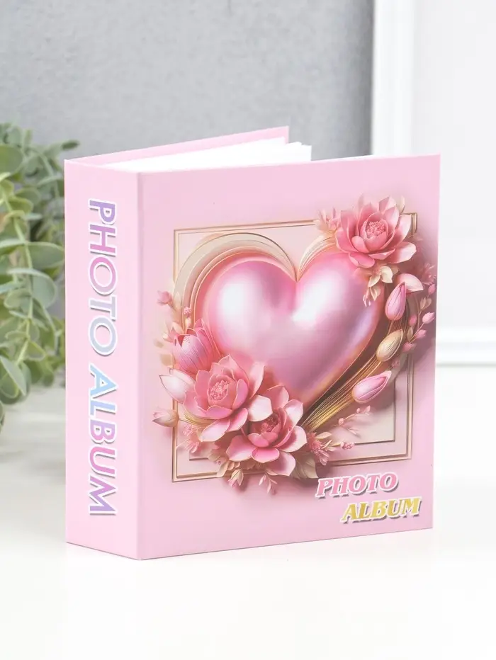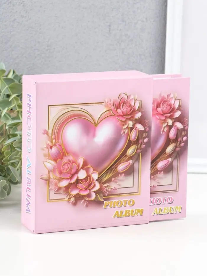 Фотоальбом на 40 фото 10х15 см "Розовое сердце в цветах" в коробке 4,5х14х17 см