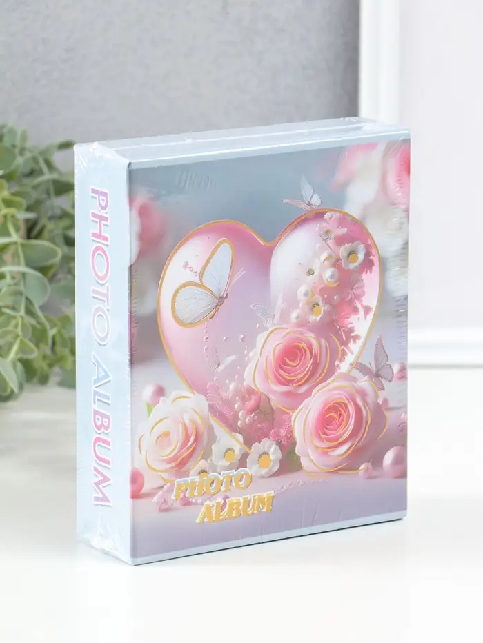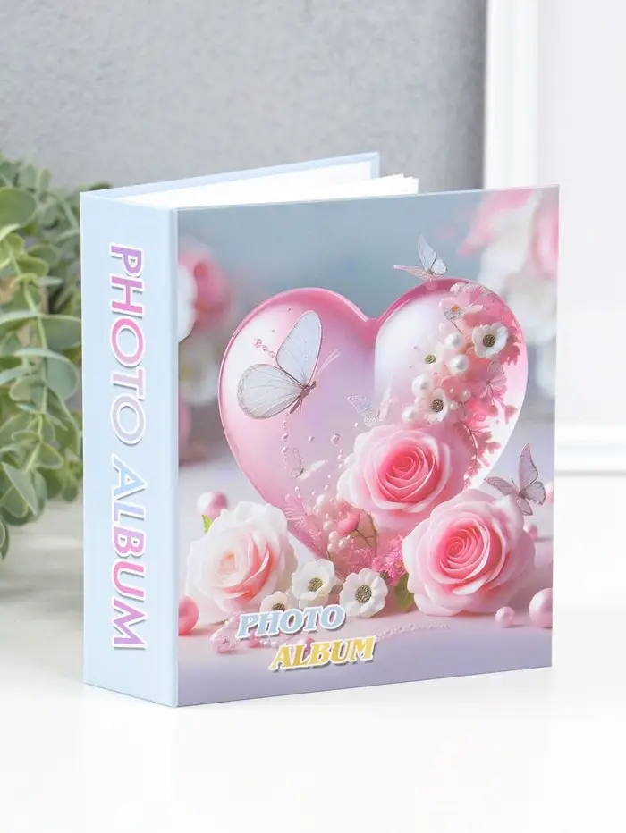 Фотоальбом на 40 фото 10х15 см "Сердце и бабочки с розами" в коробке 4,5х14х17 см
