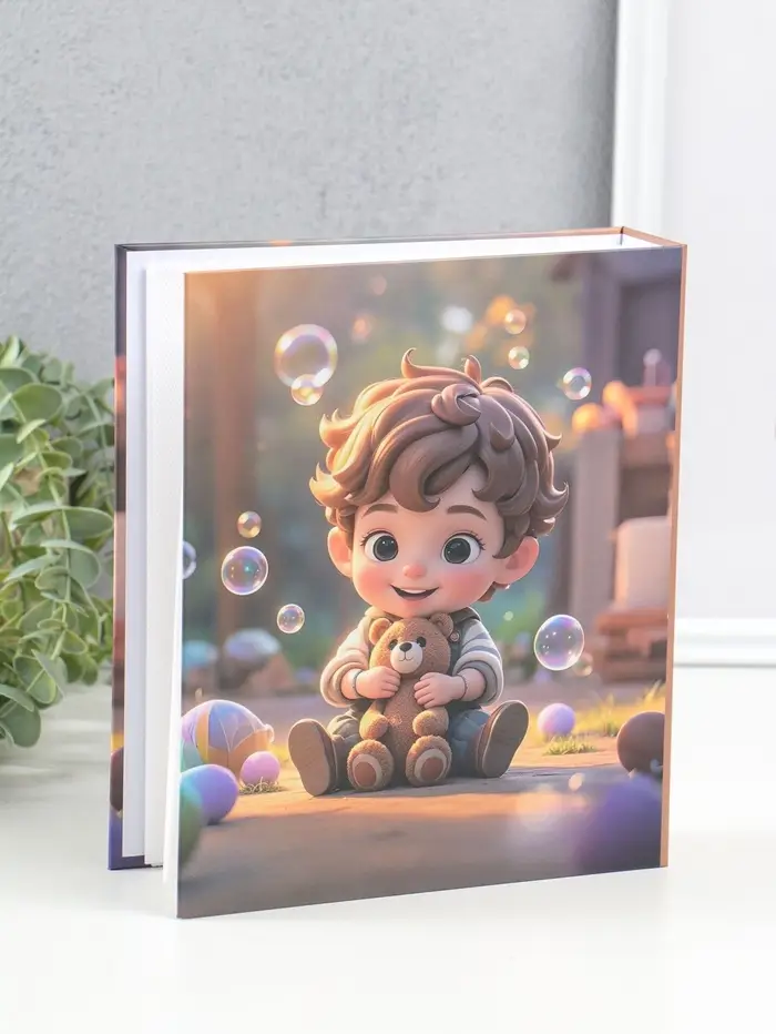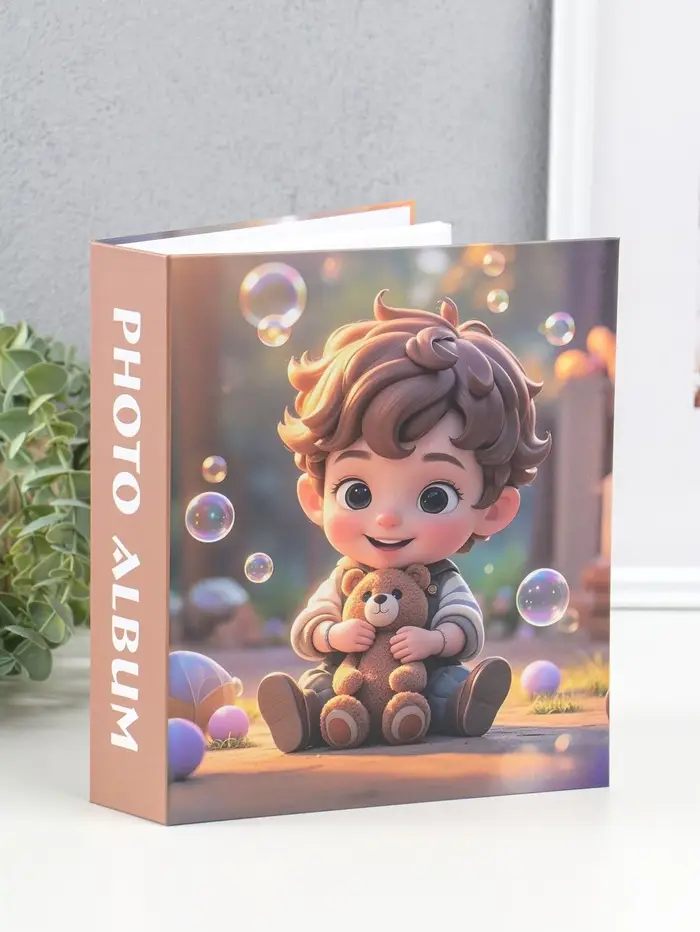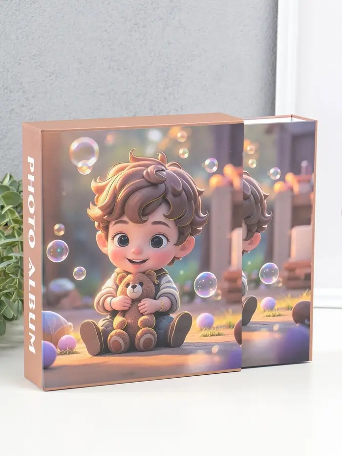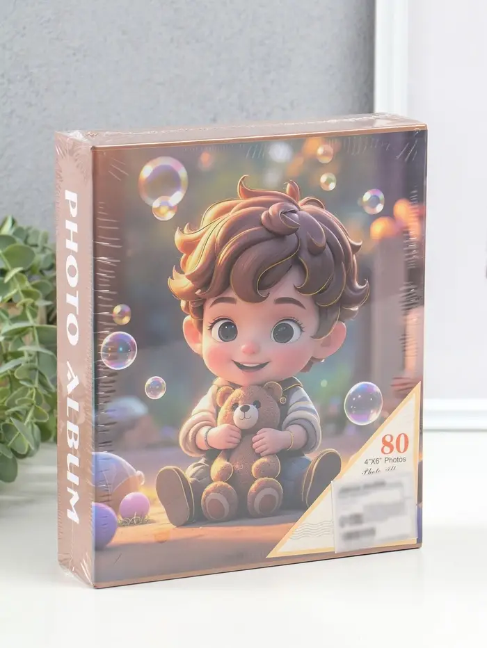 Фотоальбом на 80 фото 10х15 см "Мальчик в полосатой рубашке с мишкой" в коробке 5х19х22,8 см 10962