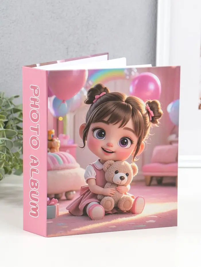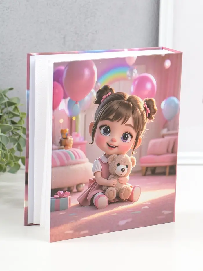 Фотоальбом на 80 фото 10х15 см "Малышка в розовой комнате, с мишкой" в коробке 5х19х22,8 см 109627