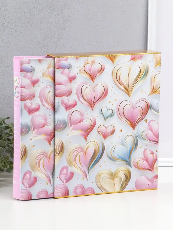 Фотоальбом на 200 фото 13х18 см "Воздушные сердца" в коробке 5,5х23,5х29,5 см