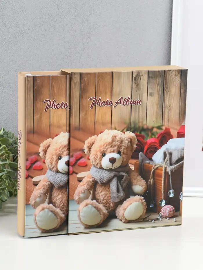 Фотоальбом на 200 фото 13х18 см "Медведь в шарфе, красные розы" в коробке 5,5х23,5х29,5 см 1096272