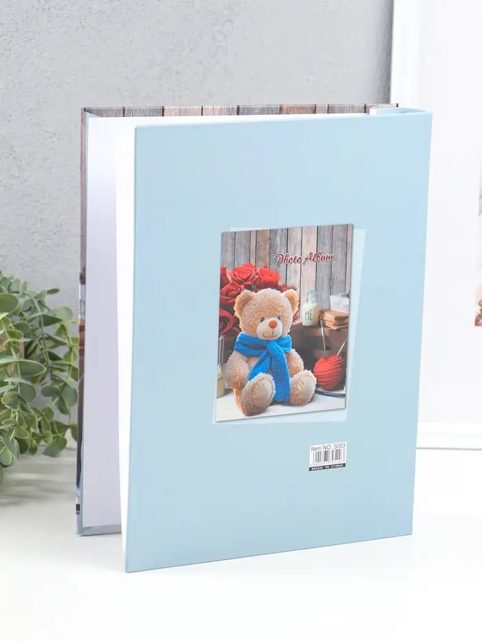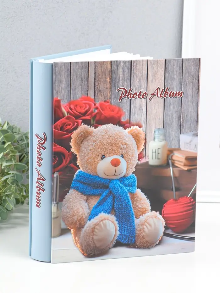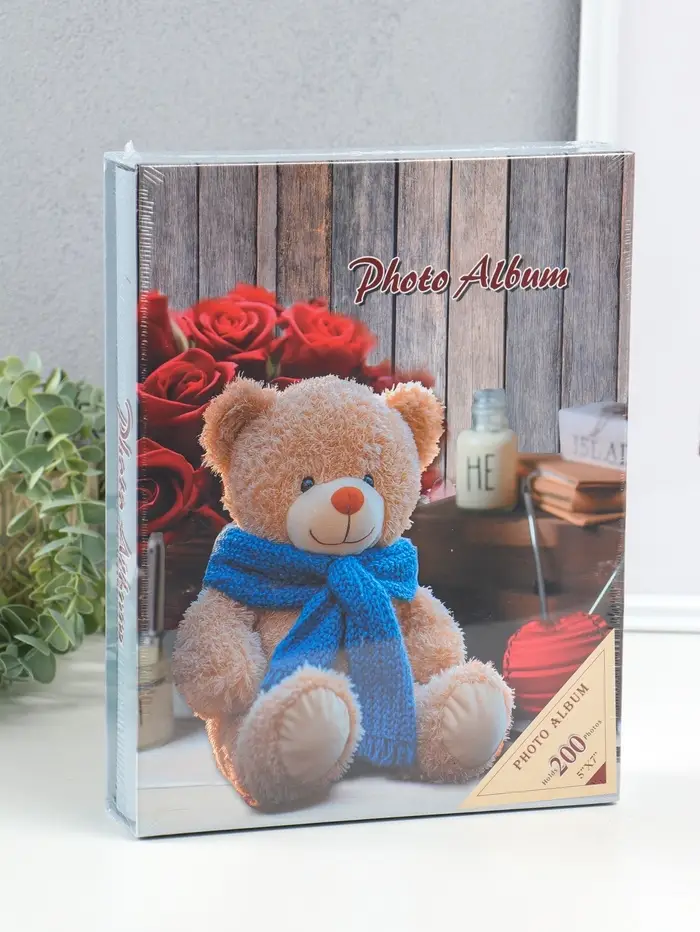 Фотоальбом на 200 фото 13х18 см "Медведь в синем шарфе и розы" в коробке 5,5х23,5х29,5 см